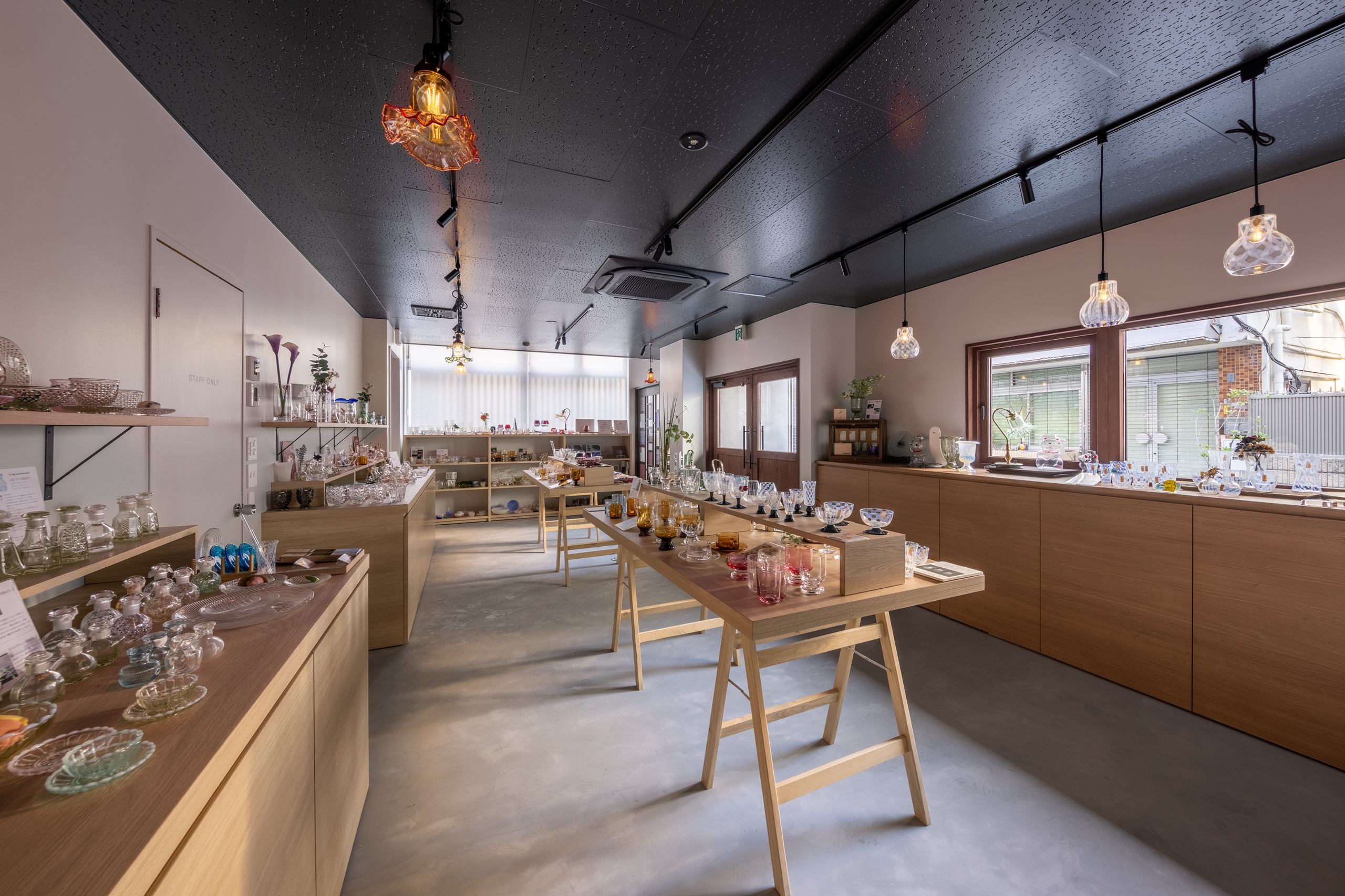 廣田硝子の最新作や定番品を取りそろえた国内唯一の直営店です。 陳列のみの商品や直営店ならではのお品物もありますので、当店にて実物をご覧になられたい方・ご購入を検討されている方はぜひお気軽にお越しください。お電話またはメールにて事前のご連絡も承っております。お気軽にご相談くださいませ。
